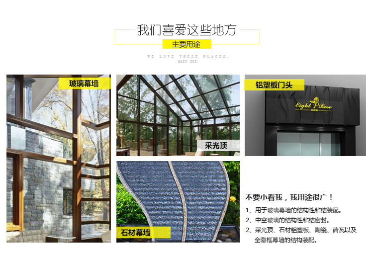 1、創(chuàng)美家C-999為單組份、室溫固化硅 酮點式幕墻結(jié)構(gòu)膠。