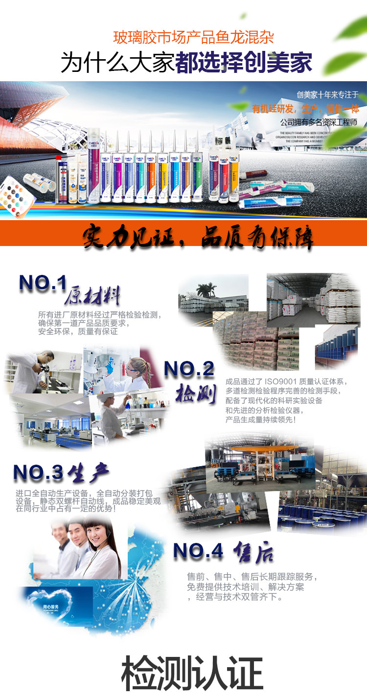1、創美家-多用途系單組份、中性脫醇型、高模量、室溫固化硅酮密封膠。