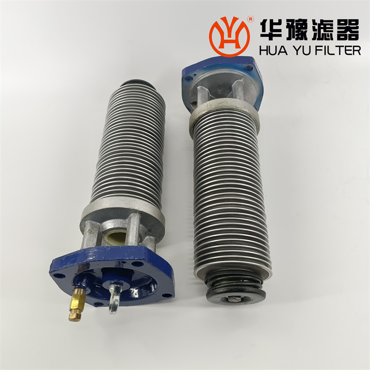 每一濾芯組件由濾器蓋、濾芯套筒、濾片及濾片圈等組成,濾器蓋頂部裝有放氣閥,供排出濾器內(nèi)腔的空氣用。 濾片套在濾芯套筒上,是濾器的主要過濾元件,由濾網(wǎng),支承網(wǎng)及波紋隔盤等組成,濾網(wǎng)的網(wǎng)目數(shù)由用戶根據(jù)需要選用。轉(zhuǎn)換閥體是由鑄鋁鋁合金制成的椎體,與閥孔研磨配合,閥體上鑄有上下兩油道孔,上油道孔一端通濾芯上方油腔,一段通濾器出口,下油道孔一段通濾芯腔,一段通濾器進(jìn)口,當(dāng)轉(zhuǎn)換閥迅速從一極限位置轉(zhuǎn)至另一極限位置時(shí),閥體將一濾芯腔的通路關(guān)閉,而將另一濾芯腔的通路打開,此時(shí),壓力油從濾器進(jìn)口流入濾芯腔,經(jīng)濾網(wǎng)過濾后的清潔油經(jīng)上方油腔從出口流出,達(dá)到濾清油液的目的。轉(zhuǎn)換閥體軸端頭上的箭頭指向接通的濾芯腔的一邊。